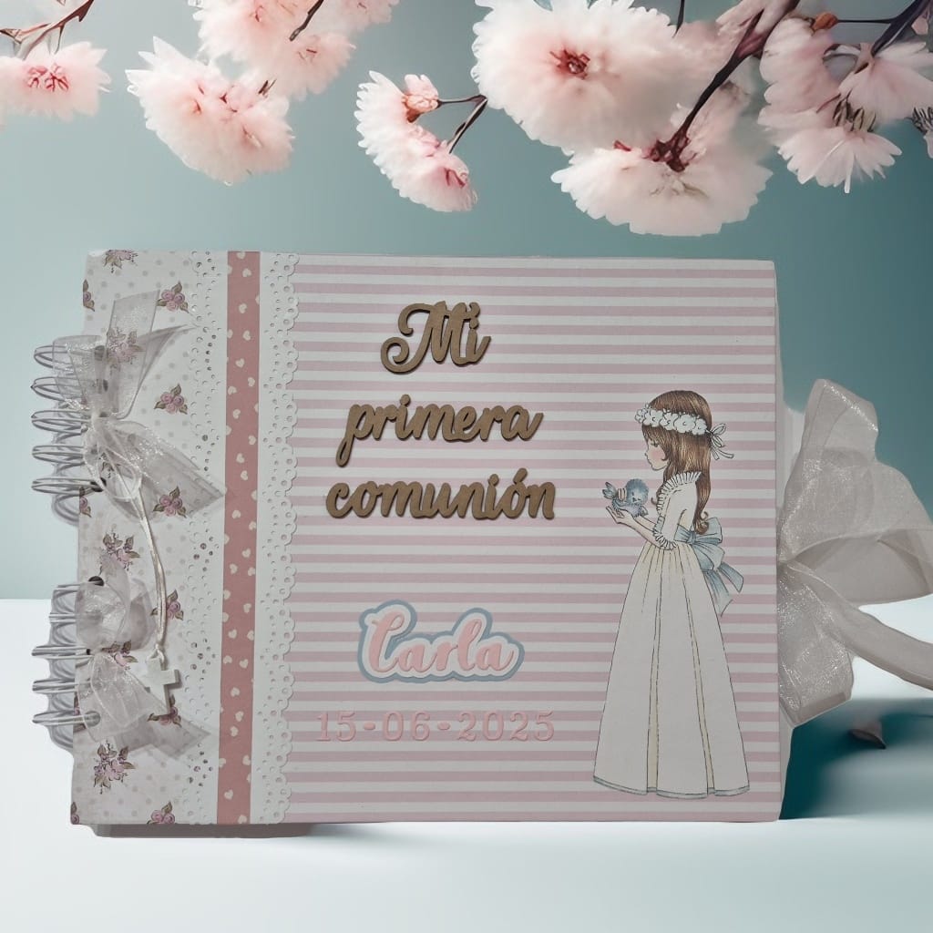 Celebra la ocasión especial de la comunión de tu hija con nuestros libros de firmas, elaborados a mano con un diseño personalizado. Cada libro es una obra única, creada con materiales de alta calidad y atención al detalle, que invita a amigos y familiares a dejar mensajes y buenos deseos en un día tan significativo.