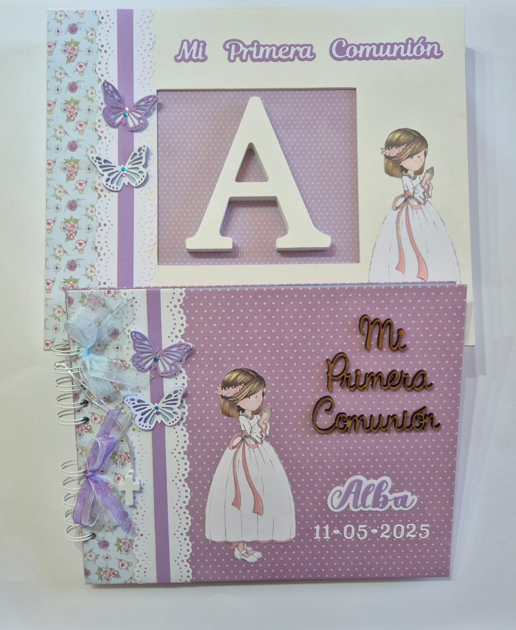 El libro puede ser personalizado con el nombre de la niña, la fecha de la comunión y otros detalles especiales.
