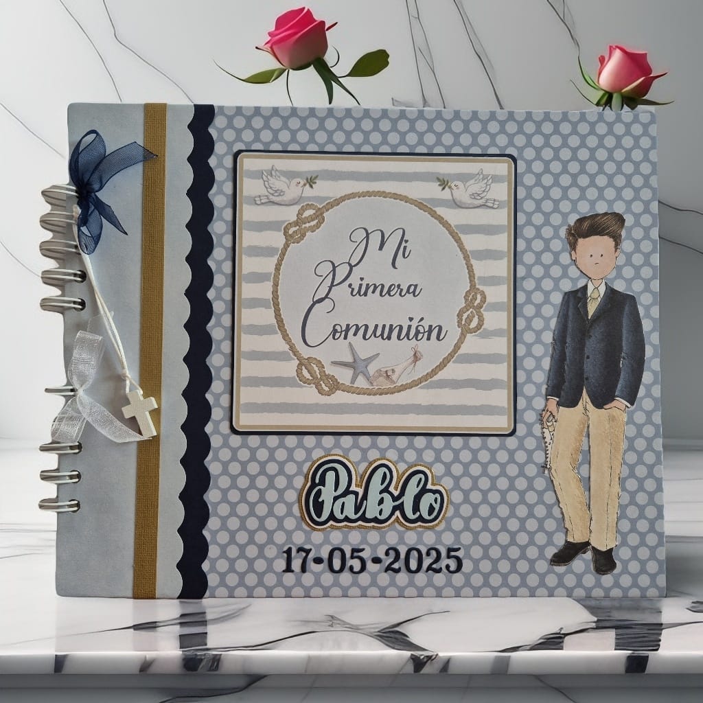 El libro puede personalizarse con el nombre del niño, la fecha de la comunión y detalles que reflejen su personalidad o tema elegido.